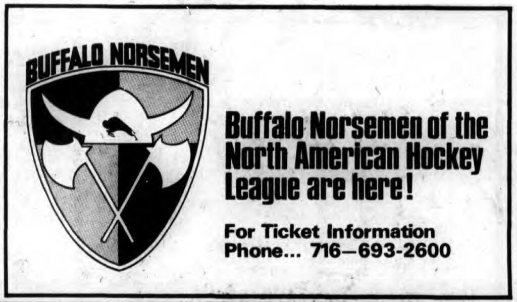 A Tonawanda News “Name the Team” contest in spring of 1975 attracts over four thousand entries. The winning “Buffalo Norsemen” moniker is announced May 5th, 1975, at a press conference in Buffalo’s Statler-Hilton. In another presser at the Twin City Racquet Club, the team colors and insignia are introduced.